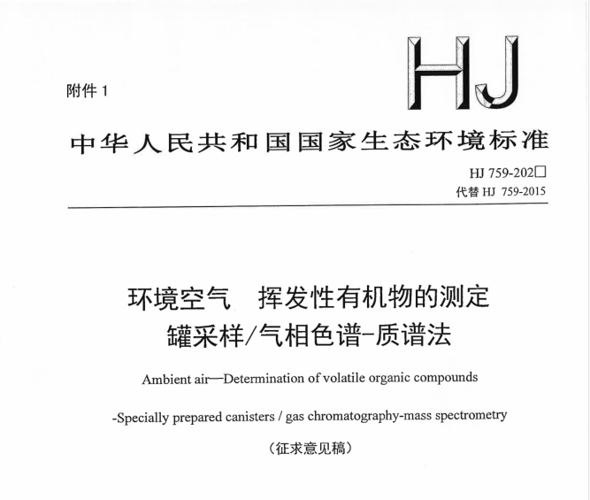 • 《環(huán)境空氣 揮發(fā)性有機物的測定 罐采樣/氣相色譜-質(zhì)譜法》迎 2021-03-19